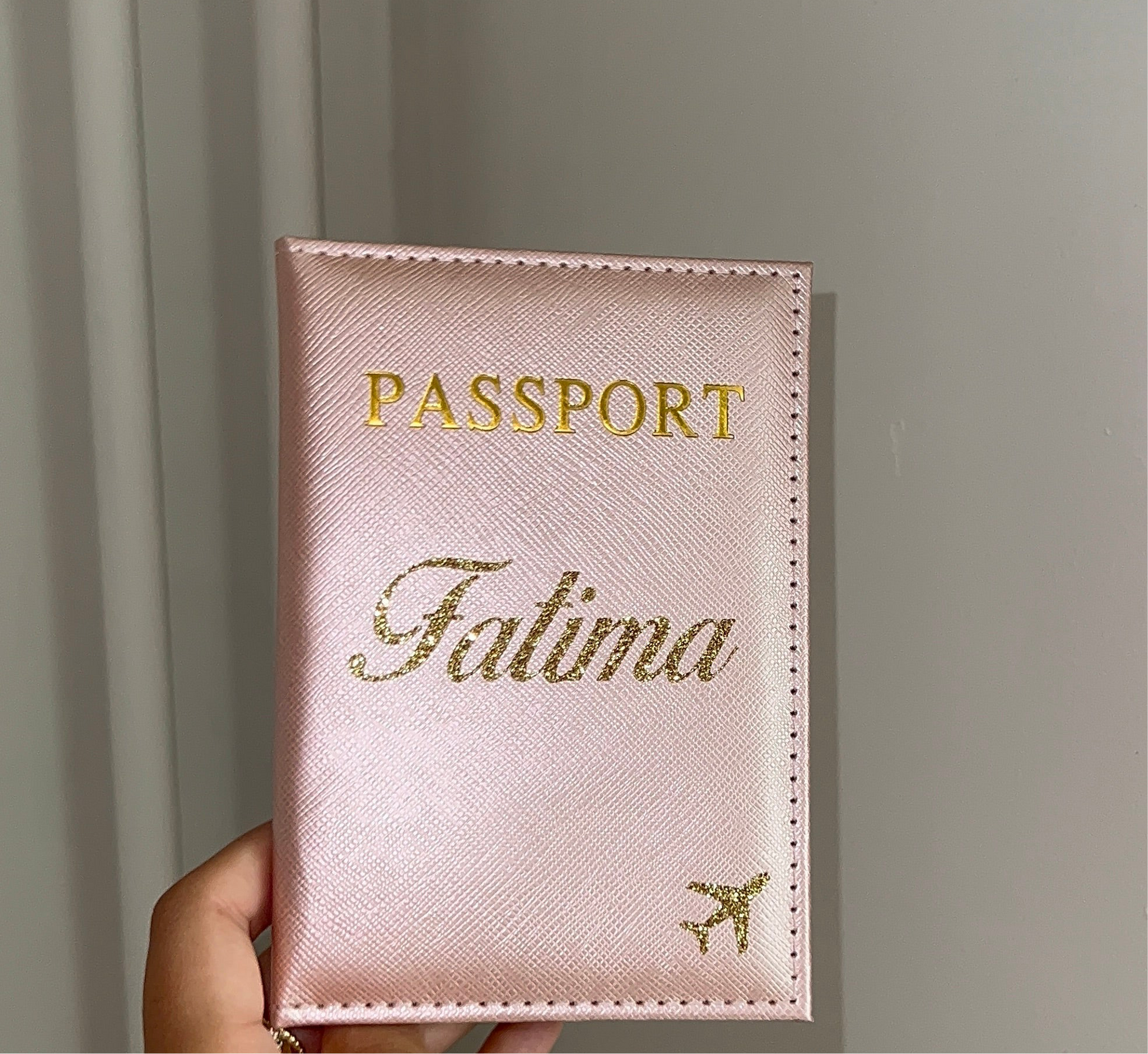 Reis in stijl met deze luxe paspoorthouder, gepersonaliseerd met jouw naam of initialen en een subtiel vliegtuigje.